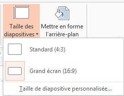 Le ruban de Création, Personnaliser Dans la partie personnaliser, vous pouvez adapter la présentation au type d'ecran 4:3 (ancien ecran TV) ou 16:9 (les nouveaux ecrans) ou alors avoir une taille completement personnelle. La taille personnalisée ouvre la fenêtre suivante: Entrer les valeurs que vous avez besoin.