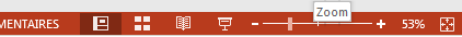 L'icone Notes permet d'afficher ou non les notes de bas de page que vous avez entrée. Vous pouvez agrandir cette zone en positionnant la souris à l'intersection entre le bas de la présentation et le haut des notes. Le curseur va changer en une double flèche et vous pouvez déplacer cette zone.